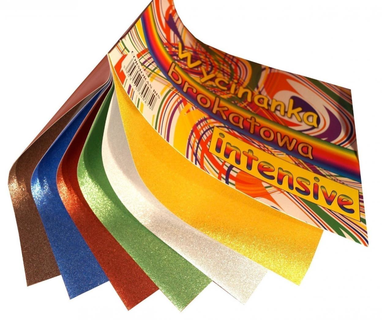 Zeszyt papierów brokatowych intensive w formacie A-4, Zawiera 6 różnokolorowych kartek z brokatem. Wycinanka.