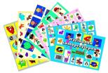 Wycinanka papierów samoprzylepnych, zawiera 6 różnych kartek z obrazkami dla dzieci.