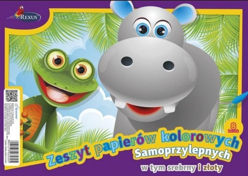 WYCINANKA SAMOPRZYLEPNA A5/8k. Okładka papier kreda 115g, kolorowy zadruk na okładce.W środku papier samoprzylepny 80g, 8 kolorów: czerwony, żółty,pomarańczowy, zielony, niebieski, srebrny, złoty, czarny.całość zszyta dwiema zszywkami płaskimi. OKŁADKA: kreda 115g, 4+0, ŚRODEK: 80g