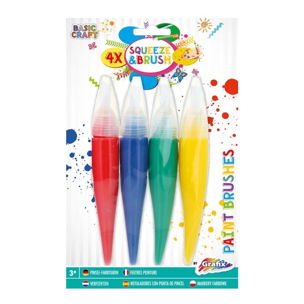 W zestawie znajdują się 4 tubki farb w różnych kolorach. Posiadają pojemność 14 ml. Pod zamknięciem znajduje się pędzelek. Lekko ścisnąć tubkę, aby farba farba zabarwiła pędzle.
