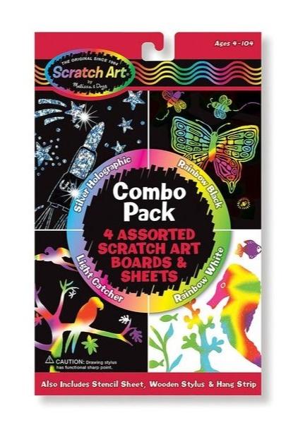 Zestaw 4 różnych wydrapywanek to świetny zestaw na początek. Dzięki temu zobaczysz jakie wzory wydrapywanek podobają Ci się najbardziej. Na czym to polega? Używając rysika jak długopisu lub kredki przesuń po czarnym papierze. Spod czerni wyłonią się błyszczące brokatowe wzory, albo wyraziste tęczowe kolory. Jeśli dziecko nie przepada za tradycyjnymi kolorowankami, a szlaczki wydają się nudne, warto spróbować wydrapywanek. Dzięki nim dziecko wytrenuje rączkę do trzymania długopisu w przyszłości.