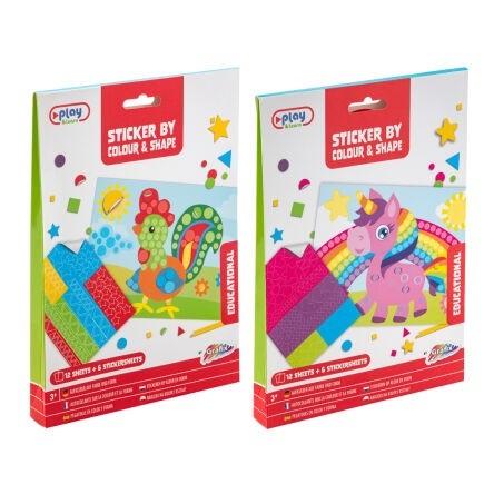 Zestaw zawiera: 12 plansz z obrazkami 7 arkuszy naklejek o różnych kształtach i kolorach