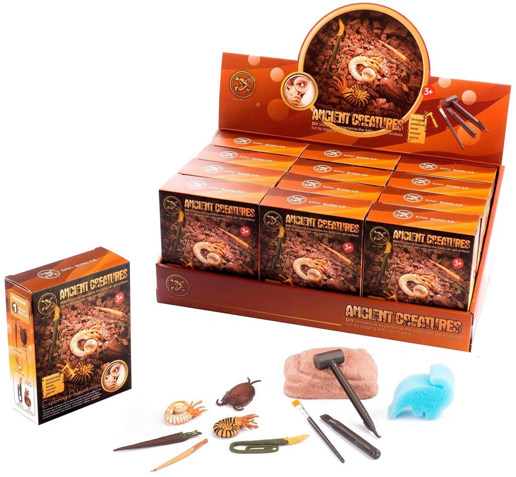 Zestaw zawiera gipsowy odlew z którego za pomocą narzędzi należy wydobyć prehistoryczne stworzenia, świetny zestaw, który pozwoli dziecku poczuć się jak naukowiec paleontolog.