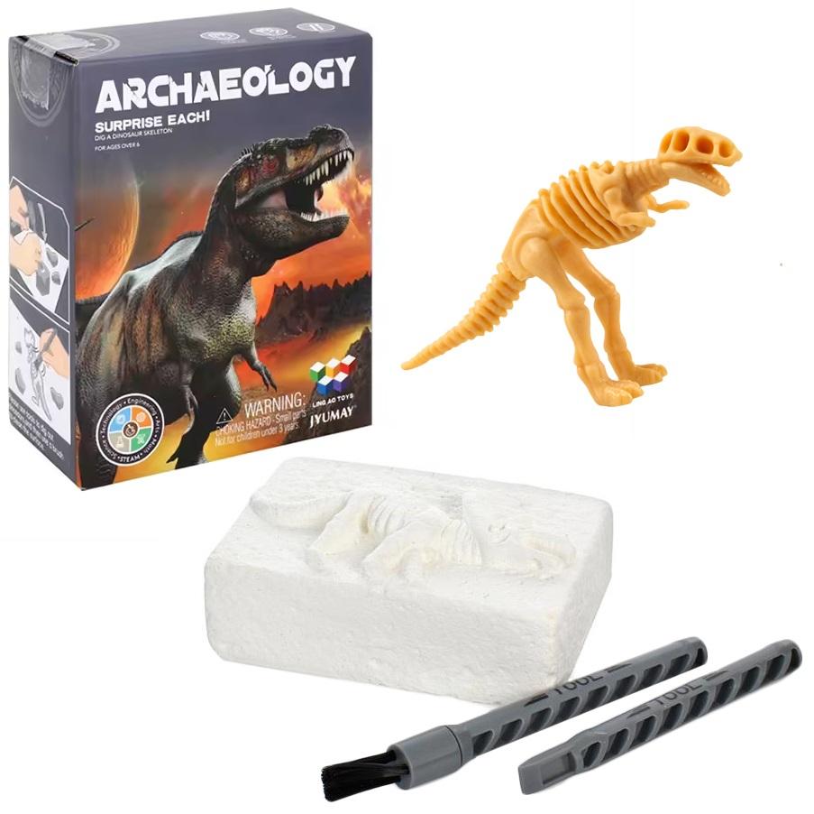 Zestaw zawiera gipsowy odlew z którego za pomocą narzędzi należy wydobyć szkielet dinozaura, świetny zestaw, który pozwoli dziecku poczuć się jak naukowiec paleontolog.