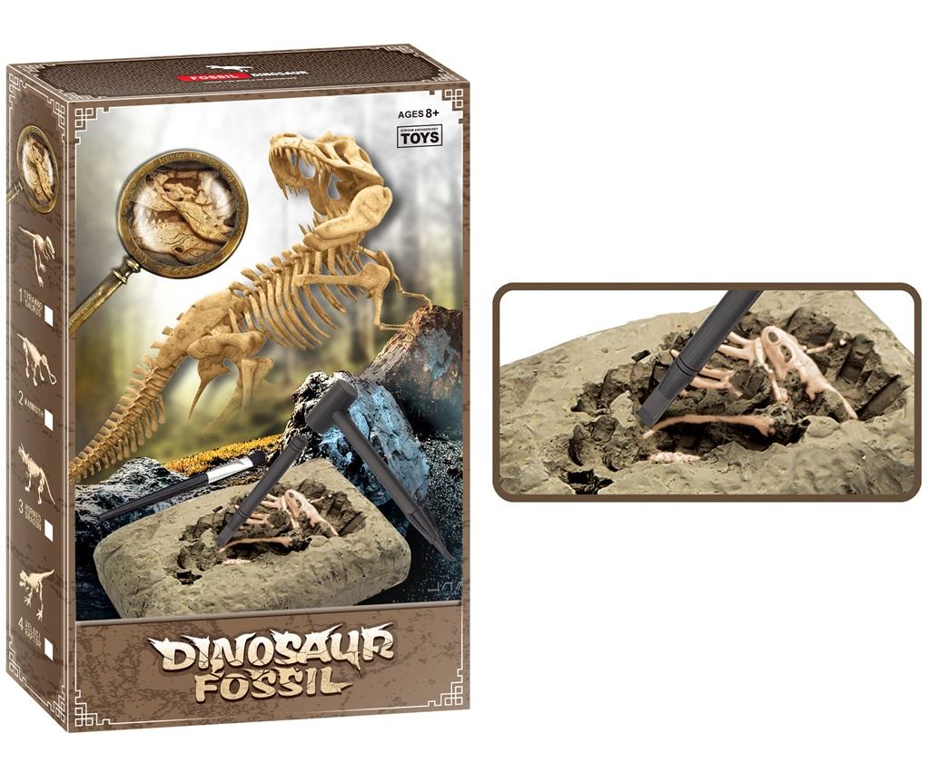 Zestaw zawiera gipsowy odlew z którego za pomocą narzędzi należy wydobyć szkielet dinozaura, świetny zestaw, który pozwoli dziecku poczuć się jak naukowiec paleontolog.