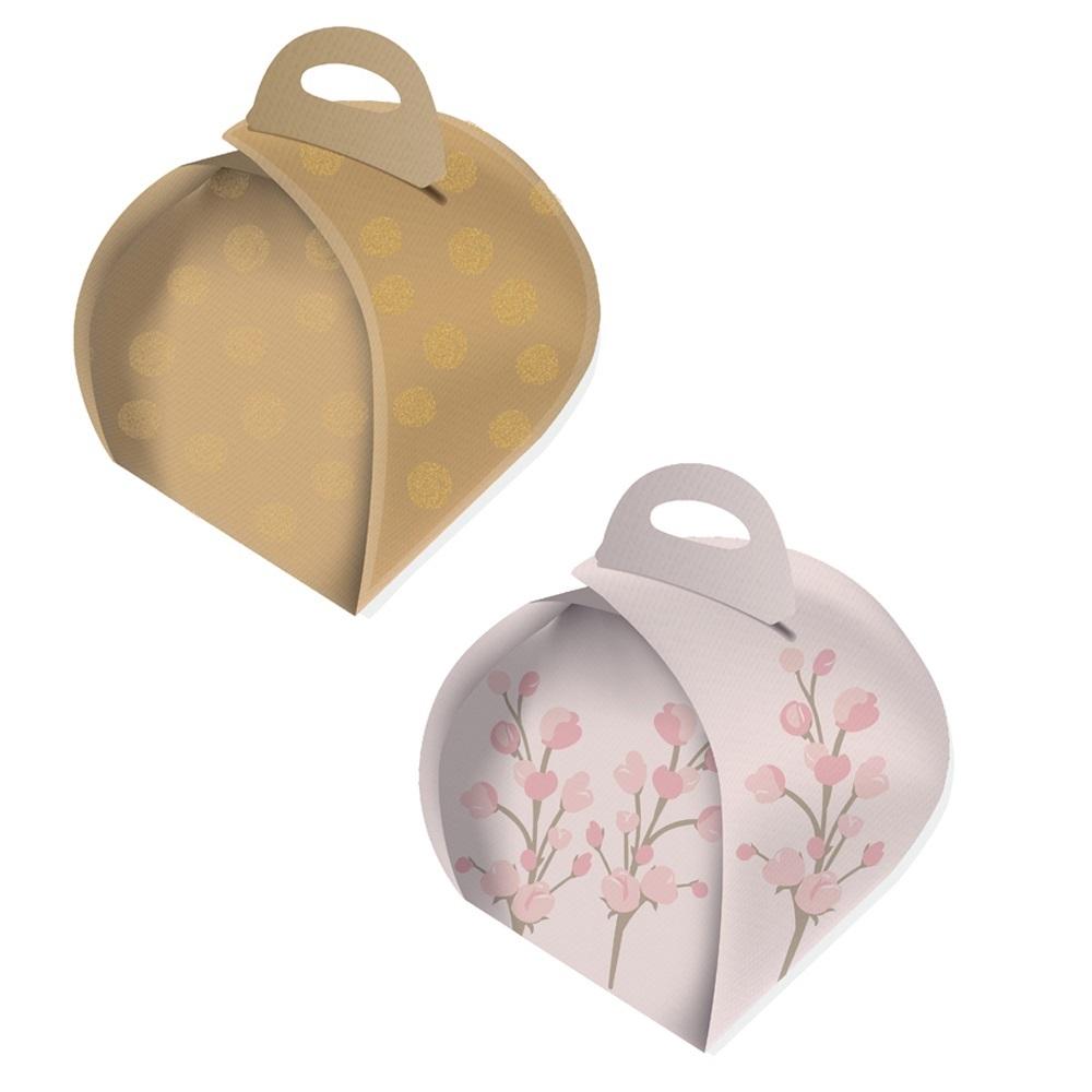 Pudełka można dodatkowo ozdabiać gotowymi elementami bądź wycinankami z innych naszych wykrojników. Pięknie prezentować się będzie ażurowy motyl, który przysiądzie na pudełku, delikatne gałązki bądź papierowe kwiaty.