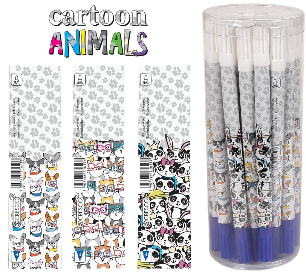 Zmazywacz atramentowy z korektorem z linii GoPen o wyjątkowej grafice Cartoon Animals. Pakowane w tubie 30 sztuk.