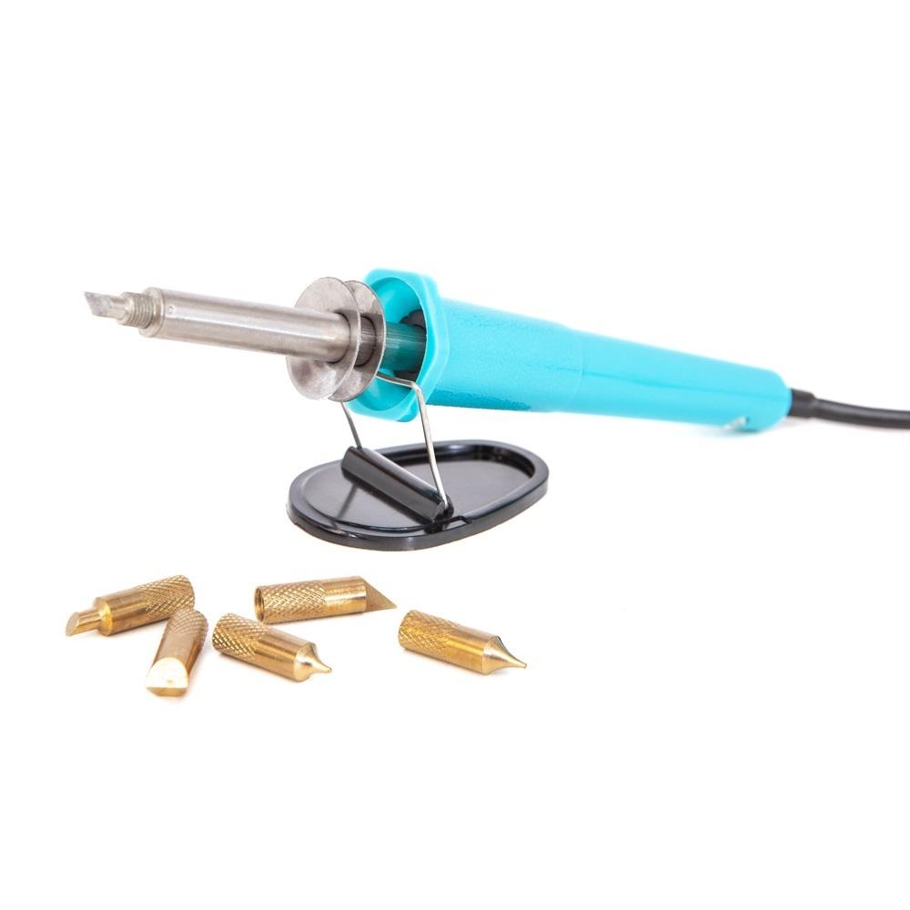 Nasz zestaw zawiera jedną wypalarkę z uchwytem, pięć wymiennych końcówek, podstawkę i instrukcję użytkowania.