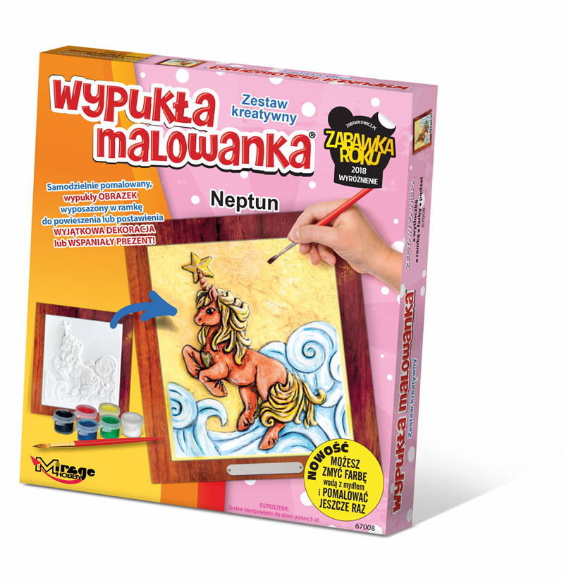 Obrazek pupila w Zestawach Kreatywnych Mirage Hobby, to wypukła wytłoczka 3D. Ponieważ jest ona wykonana z plastiku, możliwe jest umycie obrazka ciepłą wodą z mydłem i powtórne jego pomalowanie. Dzięki temu można poprawiać i dopracowywać swoje dzieło do uzyskania pożądanego efektu.