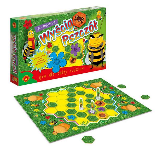 Witaj na kolorowej łące. Pomóż pszczółkom skakać z kwiatka na kwiatek i dotrzeć do ula unikając groźnych pająków. W przeprawie pomoże ci spostrzegawczość, dobra pamięć i odrobina szczęścia w rzucie kostką. "Wyścig pszczół" to pamięciowo - losowa gra z prostymi zasadami, która spodoba się zarówno dzieciom, jak i dorosłym. Zawartość pudełka: plansza, 6 pionków, 6 podstawek, kostka, 37 tabliczek, instrukcja. Liczba graczy: 2-6 Wiek 5+