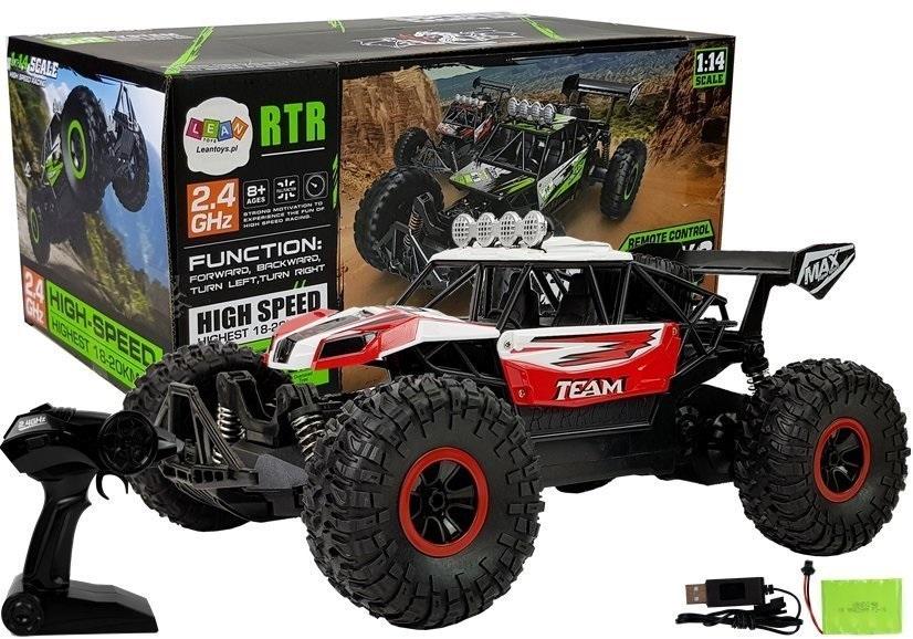 Auto Wyścigowe Off-Road Zdalnie Sterowane 1:14 Czerwone Lubisz samochody wyścigowe terenowe z szerokim rozstawem kół i sportowym wyglądem? Nasze autko idealnie pasuje do tego opisu. Każdy detal został odwzorowany z precyzją, pojazd przypomina prawdziwe odpowiedniki Off-road. Ten pojazd jest nie tylko dla dzieci. Dorośli skuszą się na zabawę. Wzmocnienie między osią a korpusem sprawia, że samochód jest bardziej stabilny, co nie jest łatwe do rozbicia nawet przy dużej prędkości. Cztery ogromne, gumowe koła antypoślizgowe, szeroko rozstawione połączone są sprężynami odpornymi na wstrząsy. Realistyczny samochód wyścigowy indoor/outdoor przynosi lepsze wrażenia offroadowe. W zestawie znajduje się wygodny i precyzyjny kontroler. Jeśli kiedykolwiek sterowałeś profesjonalnym autem, wiesz, że tego typu pilot pozwala czerpać maksymalną przyjemność z jazdy. Bezprzewodowy pilot, dołączony do zestawu, pracuje na częstotliwości 2.4 GHz, dzięki czemu można ścigać się w większym gronie bez obaw o wzajemne zakłócenia. Specyfikacja: - Kolor: czerwono- biały - Materiały: metal, elementy elektroniczne, guma, tworzywo sztuczne - Skala: 1:14 - Prędkość: 18-20 km/h - Bateria litowa: 6 V/ 600 mAh - Częstotliwość: 2.4G - Czas zdalnego sterowania: 20- 30 minut - Czas ładowania: 2-3 godzin - Zasilanie kontrolera do zdalnego sterowania: 3 baterie AA 1.5V (brak w zestawie) - Wiek dziecka: powyżej 8. roku życia - Rozstaw kół: 13 cm - Średnica kół: 8 cm - Napięcie ładowania: 6V - Zasięg zdalnego sterowania: 50- 60m Wymiary wybranych elementów zestawu: - auto terenowe zdalnie sterowane: 30 cm x 19 cm x 12 cm - pilot do zdalnego sterowania: 16 cm x 7 cm x 19 cm Wymiary pudełka: 42 cm x 19 cm x 23 cm Zabawka przeznaczona jest dla dzieci powyżej 8. roku życia. Zestaw posiada certyfikat CE i jest zgodny z normą EN 71. Zapakowany jest w kartonik z przezroczystą witrynką, dzięki czemu nadaje się idealnie na prezent.