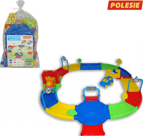 Najlepsza zabawa samochodzikiem, to jeżdżenie nim po wyznaczonej trasie. Maluch może odgrywać wymyślone scenki, a także ćwiczyć swoją koordynację ruchową. Zestaw zawiera elementy toru do ułożenia oraz dwa samochodziki. Wiek 1+
