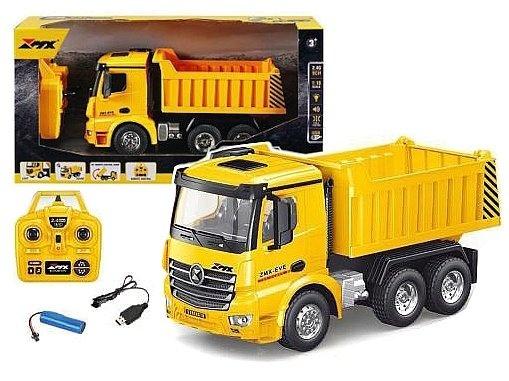 auto ciężarowe na radio, wywrotka 1:18, 9 funkcji, kabel USB, 28,5x15x12,5cm; 43x22x14cmm