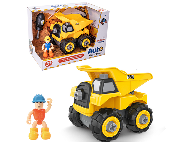 Mały konstruktor przykręcając śrubki ćwiczy grafomotorykę swojej rączki - przez zabawę przygotowuje się w przyjemny sposób do trudnej sztuki pisania.A po skręceniu pojazdu może się bawić w plac budowy, na który wywrotka dostarczy niezbędne materiały budowlane.Wywrotka 13 cm.Wiek: 3+ Wymiar opakowania: 25x13.5x18.5 cm