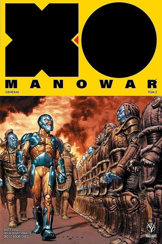 Pośród płomieni zwycięski żołnierz zostanie… generałem. Zmiażdżywszy wrogie siły Kadmów, Aric z Dacji staje na czele całej floty podczas ostatniej bitwy o duszę imperium. Nad Obcą planetą nastanie nowy świt. Jakie zagrożenie przyniesie? Na drogę do zwycięstwa Arica pada cień. Popularny rysownik Doug Braithwaite (ARMOR HUNTERS) dołącza do scenarzysty z listy bestsellerów New York Timesa, Matta Kindta (DIVINITY, Mind MGMT) i razem tworzą doskonałą, wstrząsającą posadami planety kontynuację jednej z największych serii wydawnictwa Valiant! Album zawiera materiały opublikowane pierwotnie w X-O Manowar (2017) #4-6.