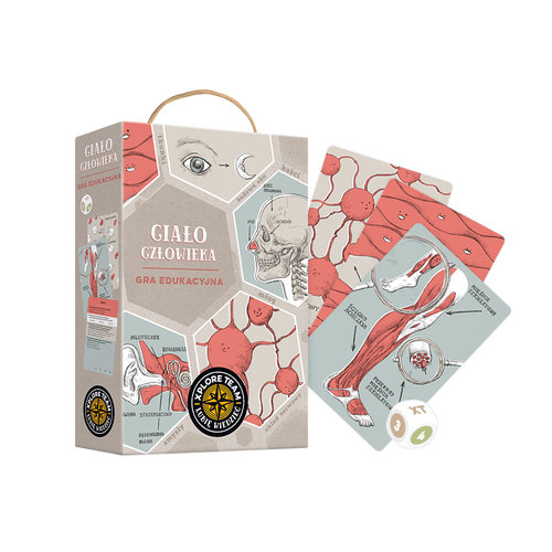 Poznajcie ludzkie ciało od stóp do głów! Oparta na quizach gra w ciekawy sposób przekazuje wiedzę o budowie i działaniu ciała człowieka oraz dużą dawkę informacji o zdrowym stylu życia. Proste zasady zapewniają świetną zabawę: gracze zadają sobie wzajemnie pytania i wygrywa ten, kto zdobędzie najwięcej kart. Gra nie tylko sprawdza i utrwala posiadaną wiedzę, ale także daje możliwości poznania nowych faktów i zachęca do rozwijania zainteresowań. Wyjątkowe ilustracje stworzyła Dorota Wojciechowska-Danek. Zapakowana w poręczne pudełko gra doskonale sprawdzi się podczas zabawy z rówieśnikami, w trakcie podróży czy rodzinnej rozgrywki. Zestaw zawiera: 56 dwustronnych kart w formacie 8 x 12 cm, kostkę XT, instrukcję. W serii ukazały się także: „Tajemnice Ziemi”, „Przyroda Polski”, „Wynalazki, które zmieniły świat”.