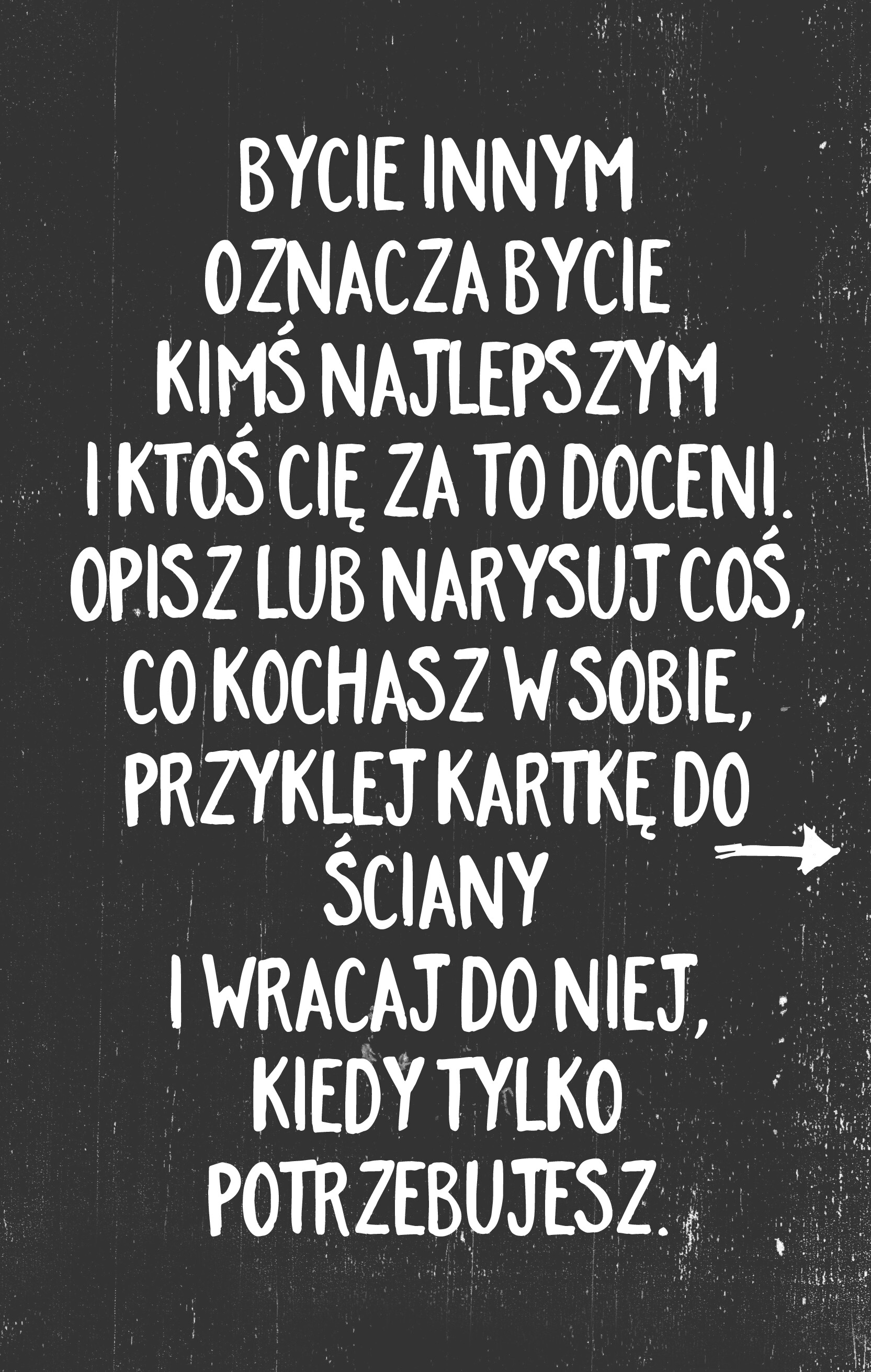 Bycie innym to najlepsza pieprzona rzecz na świecie i powinieneś być z tego dumny! Ten interaktywny dziennik, napisany i zilustrowany przez Yungbluda, jest pełen niepublikowanych dotąd rysunków, tekstów, wskazówek wyzwalających kreatywność i wnikliwych pytań, które zachęcą cię do zagłębienia się w siebie i celebrowania tego, co cię wyróżnia.