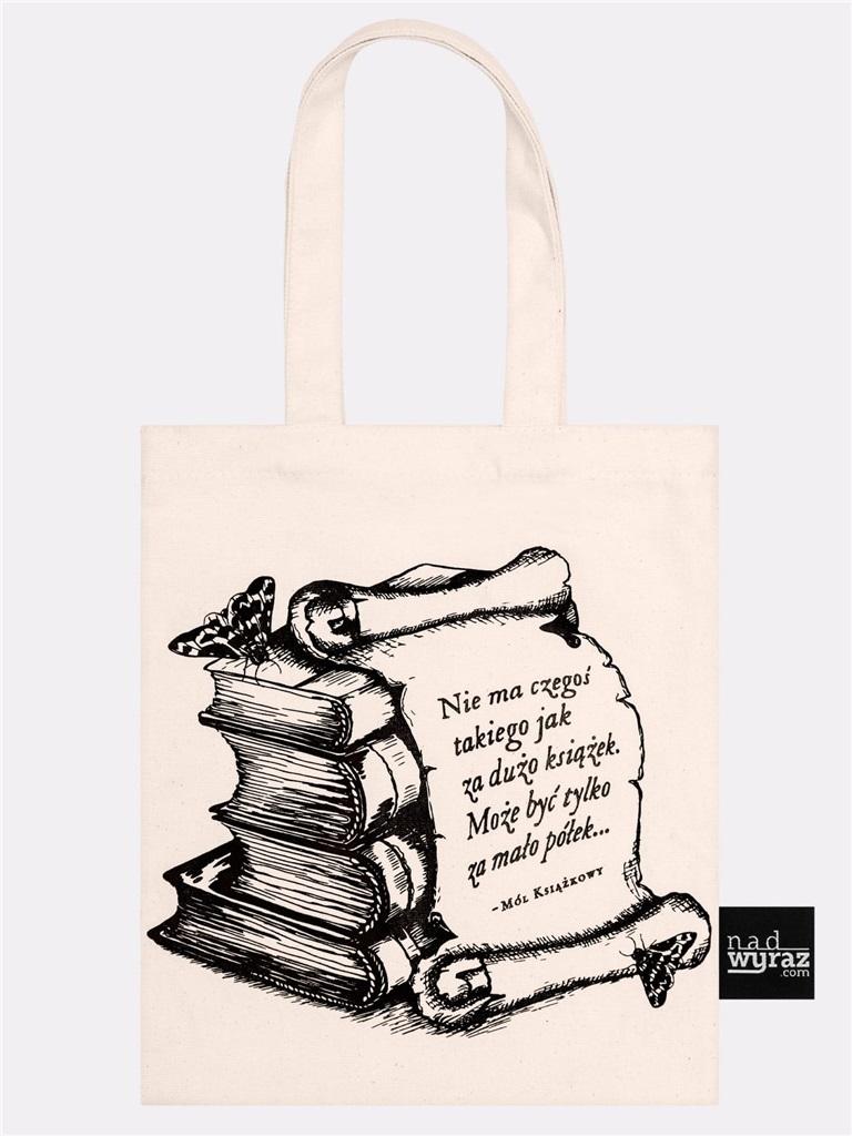 Wyjątkowa torba ZA DUŻO KSIĄŻEK z dwustronnym nadrukiem poleca się na prezent dla mola książkowego, polonisty i każdego zapalonego czytelnika!