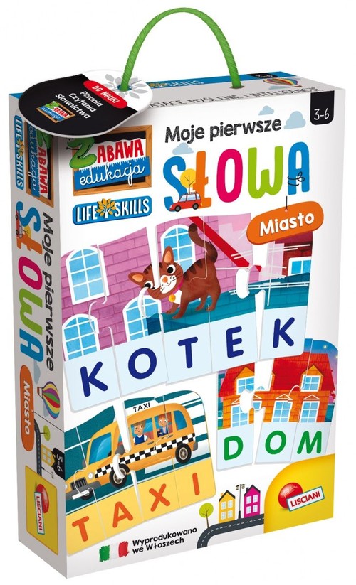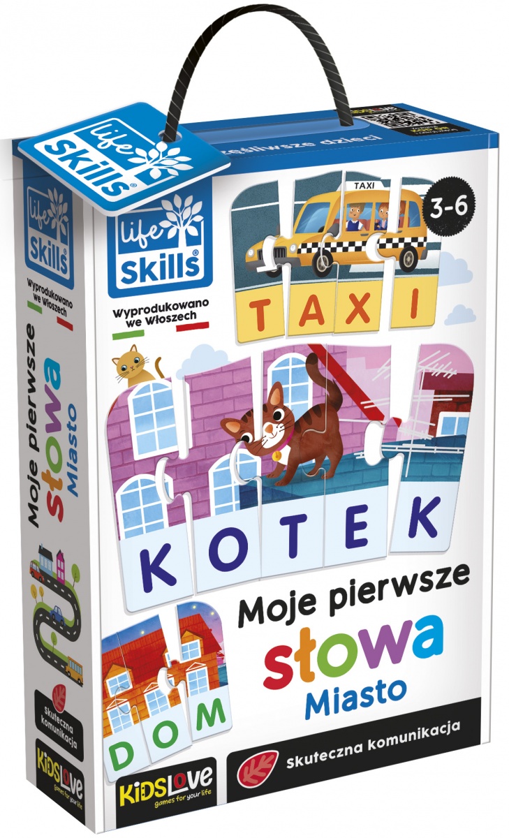 Zabawa i edukacja to nowa seria edukacyjna, która pozwala dzieciom na poznawanie określonych obszarów i zdobywanie istotnych kompetencji, które są istotne w późniejszych etapach życia. Światowa Organizacja Zdrowia wyodrębniła 10 umiejętności życiowych, które są potrzebne by wyrosnąć na lepszą i szczęśliwszą osobę, która jest w stanie prowadzić godne życie. I to właśnie te umiejętności są rozwijane w grach z tej serii, które są również dla dziecka świetną zabawą. Dzięki tej grze, dzieci mogą poznać pierwsze słowa związane z miastem i znajdującymi się tam elementami. Zawartość: 60 kart instrukcja Wiek 3-6 lat