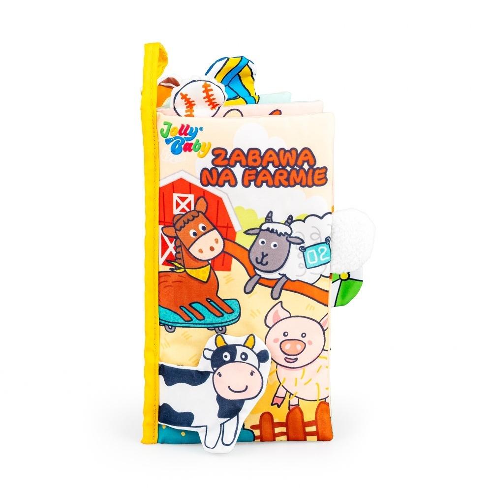 Wiejskie zwierzątka zapraszają maluszki do wspólnej zabawy w oglądanie obrazków i odkrywanie zróżnicowanych faktur materiałów! Książeczka wyposażona została w szeleszczącą okładkę i barwne strony, z których wystają różne, materiałowe elementy. Na poszczególnych stronach na najmłodszych czekają krótkie zdania w języku polskim, nawiązujące do obrazków. Praktyczna zawieszka pozwala przyczepić książeczkę w dowolnym miejscu, aby mogła towarzyszyć maluchowi podczas zabawy w domu, a także na spacerze.