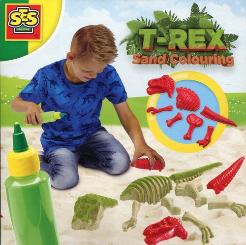 Wypełnij kuwetę piaskiem, umieść w niej szkielet dinozaura i pokoloruj specjalną farbą do piasku. Łatwo zmywalna z większości tkanin. Zabawka dla dzieci od lat 3.