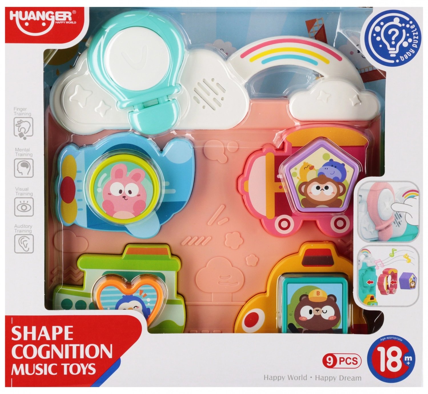 Zawartość zestawu: tablica puzzle. Wymiary/ waga/ baterie: wymiary produktu (dł. x wys. x gł.) {cm} 22x3x23 cm, waga produktu (kg.) 0,33 kg, wymiary opakowania (dł. x wys. x gł.) {cm} 26x25x4 cm, waga produktu w opakowaniu (kg.) 0,47 kg, wymaga zasilania bateriami 3x AAALR03- nie załączonymi do zestawu. Przeznaczony dla dzieci w wieku 18m+. Pakowany w kartonik z okienkiem.