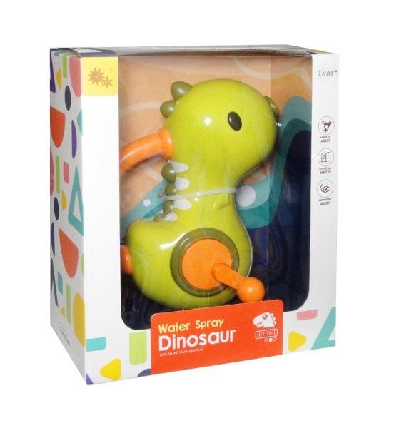 Zabawka do kąpieli w kształcie dinozaura. Umieść zabawkę w wodzie, przekręć korbkę, a wtedy woda będzie wylewać się strumieniem z paszczy dinozaura. Zabawka dla dzieci od 18 miesiąca życia. Produkt zapakowany w kartonowe opakowanie z przezroczystym okienkiem.
