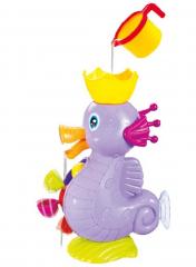 Kolorowy konik na przyssawkę to świetna zabawka do urozmaicenia kąpieli naszego maluszka. Wlewając wodę załączonym kubeczkiem do korony konika otwiera się jego dzióbek. Wypływająca woda uruchamia uruchamia kolorowy brzuszek konika. Zabawka ćwiczy zdolności manualne, uczy i bawi.