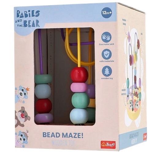 Druciana przeplatanka-labirynt z drewnianymi koralikami na licencji Babies and the Bear.