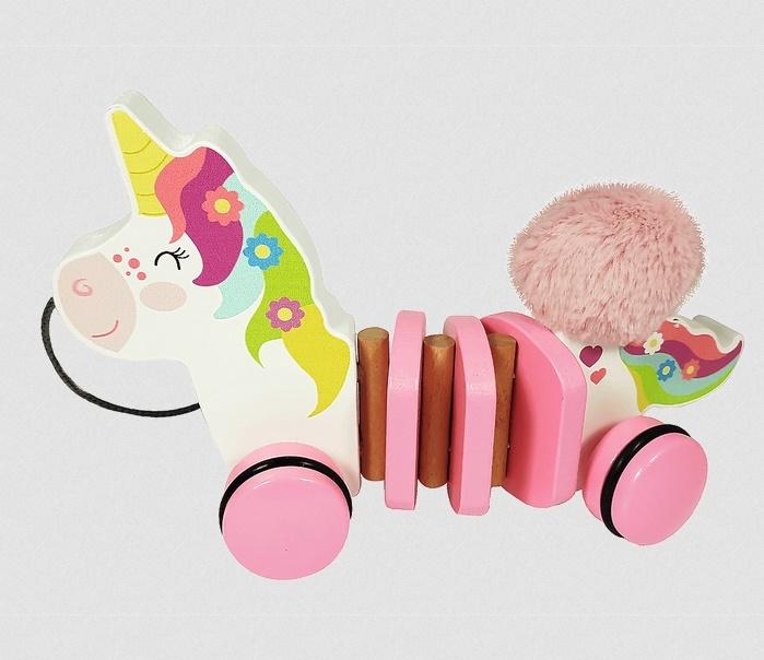 Jednorożec Lea z pluszowym ogonkiem wykonany został z naturalnego drewna. Jest doskonałą zabawką, która towarzyszy najmłodszym przy stawianiu pierwszych kroków. Zabawka jest znakomitym rozwiązaniem dla dzieci od 12 miesiąca życia. Jednorożec Lea wyposażony jest w sznureczek i małe drewniane kółeczka, dzięki którym zawsze podąża za swoim opiekunem. Wszystkie materiały wykorzystane do stworzenia zabawki posiadają atesty, a także zostały pomalowane nietoksycznymi farbami. Dla dzieci w wieku od 12 miesięcy