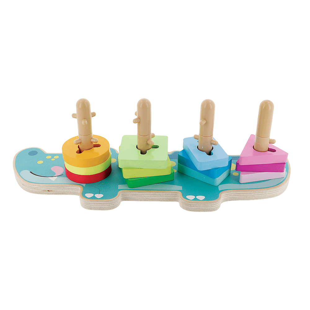 Krokodylek Cyrylek wykonany został z naturalnego drewna. Krokodylek to łamigłówka, która wspomaga rozwój motoryki małych paluszków, wzmacnia koordynację wzrokowo-ruchową, a także uczy precyzji – dopasuj odpowiedni kształt na bolec. Zabawka wspomaga rozwój zręczności oraz myślenia. Dzięki niej dziecko poznaje kształty i kolory. To świetna zabawka drewniana skierowana do dzieci już od 18 miesiąca życia!