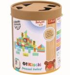 Drewniane klocki wspierają rozwój kreatywności, a figurki zachęcają do odgrywania ról. W zestawie 3 figurki przedstawiające ulubione postaci z bajki Bobaski i Miś.