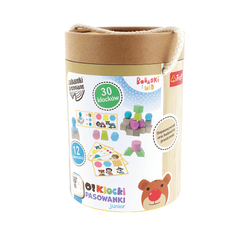 A na kartach nie kto inny jak postacie z ulubionego serialu Bobaski i Miś. Zabawka wspiera rozwój motoryki małej oraz koordynacji wzrokowo-ruchowej, a także rozwija wyobraźnię przestrzenną