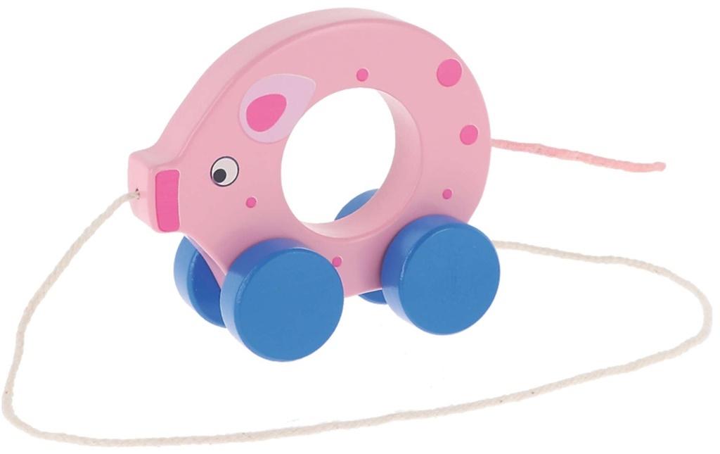 Świnka z bajki Bobaski i Miś to zabawka, która została wykonana z naturalnego, bezpiecznego dla dzieci drewna. Doskonałe rozwiązanie dla dzieci już od 12 miesiąca życia. Zabawka posiada otwór, który umożliwia dziecku ćwiczyć motorykę małą, poprzez rozwój umiejętności chwytania. Rozwój motoryki małej, czyli umiejętności manipulacyjne rąk mają ogromne znaczenie, na bardzo wczesnym etapie rozwoju dziecka. Zamontowany przy zabawce sznureczek, według opinii psychologa, ma idealną długość dla małego dziecka, które rozpoczyna naukę chodzenia. Zabawka zachęca do wspólnych spacerów.