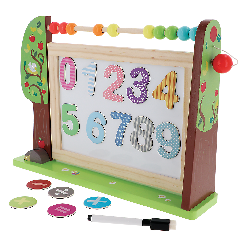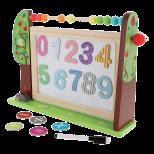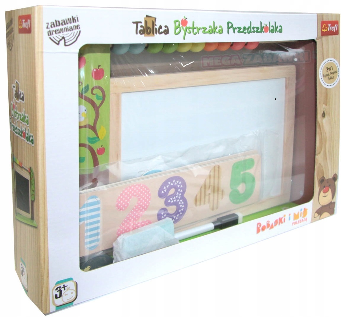 Tablica Bystrzaka Przedszkolaka to drewniana, wielofunkcyjna zabawka: narysuj, napisz lub policz! Tablica 3 w 1: tablica na kredę, tablica na pisak tablica na magnes. Doskonała zabawka dla dzieci od 3 roku życia, które rozpoczynają przygodę z nauką pisania i liczenia. Zabawka pobudza wyobraźnię i aktywizuje dziecko do nauki poprzez zabawę!
