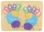 Drewniana zabawka edukacyjna dla dzieci, pomagająca w nauce liczenia i rozróżniania lewej i prawej strony. Elementy pomalowane nietoksycznymi farbami.