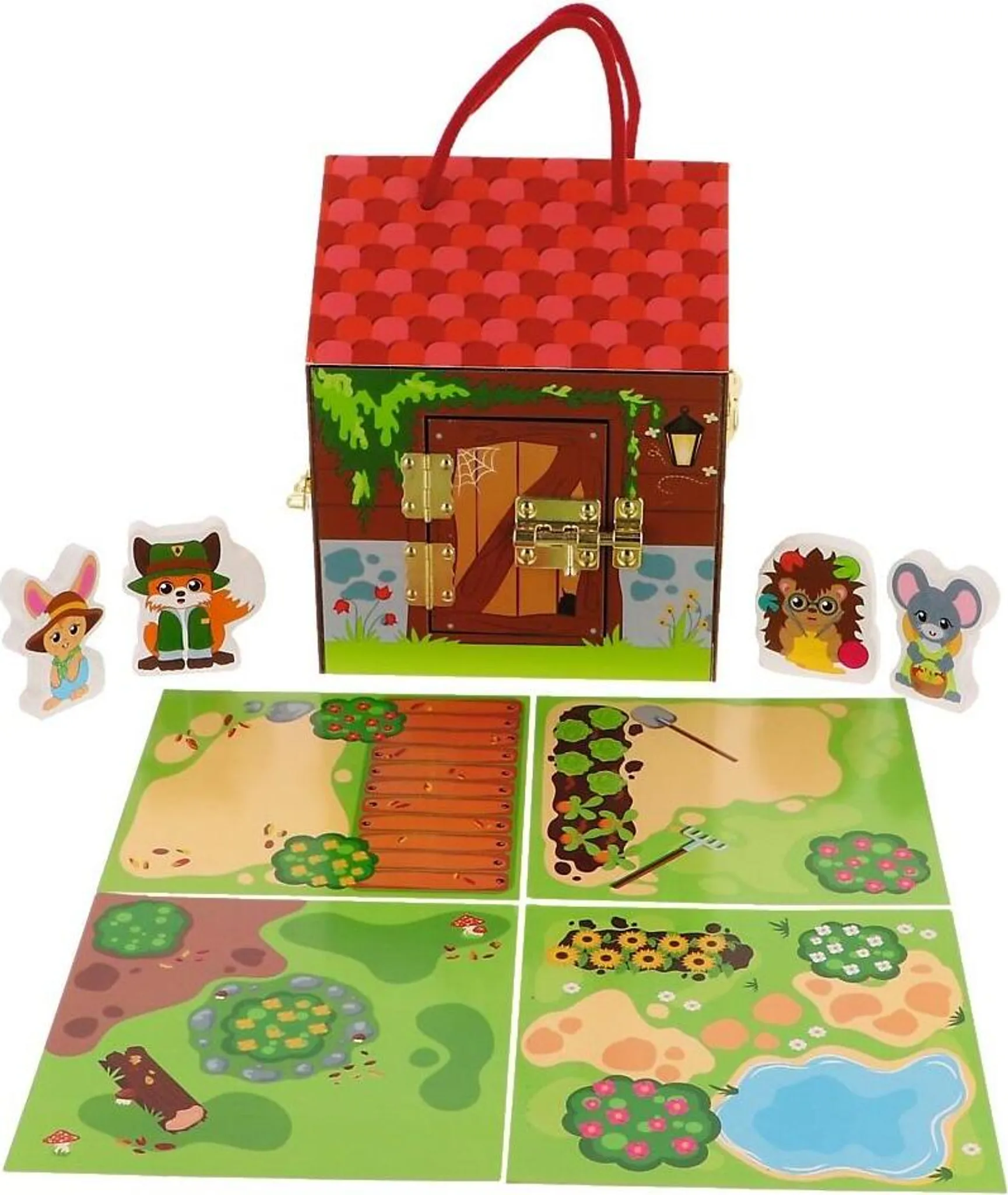 Drewniane figurki zwierząt zachęcają do odgrywania ról, a ilustrowane karty z roślinnością, dają jeszcze więcej scenariuszy zabawy!