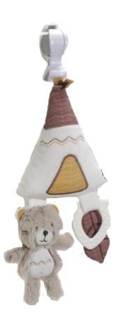 Edukacyjna zabawka z klipsem przy pomocy którego możemy zawiesić zabawkę do łóżeczka, wózka, fotelika lub kołyski.
