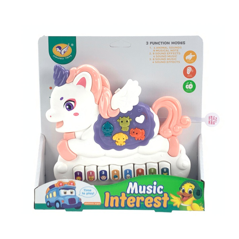 Pianinko posiada trzy rodzaje dźwięków: - odgłosy zwierząt - melodie - efekty dźwiękowe Możliwość ściszania lub zgłaśniania dźwięków Wymagane baterie - 2xAAA (dołączone).