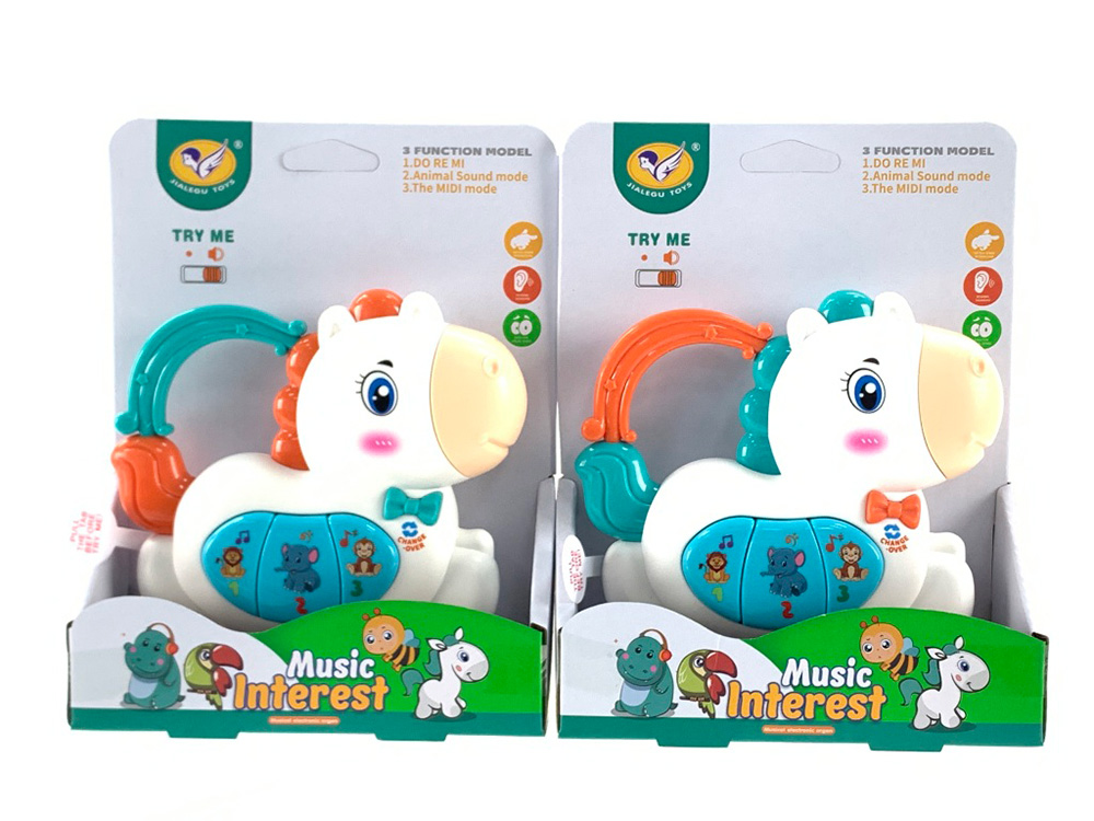 Zabawka występuje w dwóch wersjach kolorystycznych. Posiada efekty dźwiękowe: do, re, mi; odgłosy zwierząt. Możliwość ściszania lub zgłaśniania dźwięków Wymagane baterie - 2xAAA (dołączone).