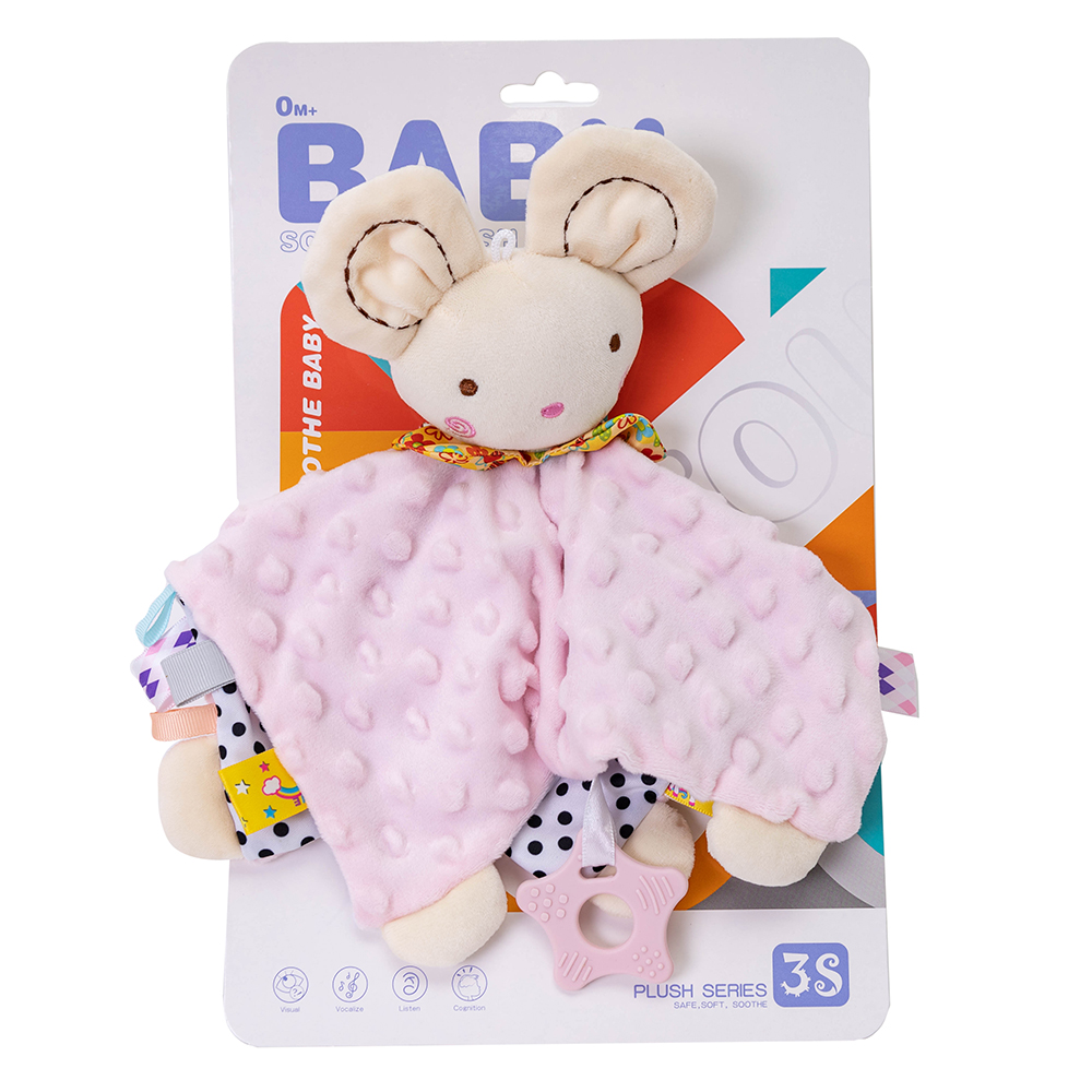 Zabawka pluszowa zakończona gumowymi gryzakami lub metkami do gryzienia dla malucha.