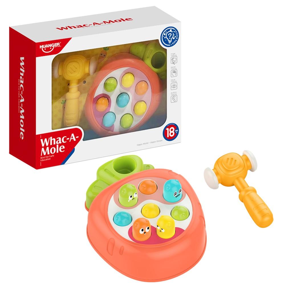 Zabawka z młotkiem polega na uderzeniu wystającego robaczka.