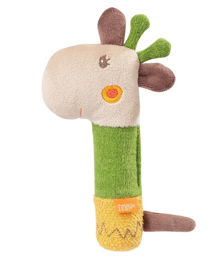 Zabawka do Rączki z Piszczałką i Grzechotką, Żyrafa Lotta, z Kolekcji: Loopy i Lotta. Stworzona dla małych rączek, delikatna w dotyku, urocza maskotka Żyrafa, z kolekcji: Loopy i Lotta, szybko zdobędzie serce dziecka. Przyjazna Żyrafa, piszczy radośnie, gdy dziecko ją ściska. Posiada w środku grzechotkę.To budzi ciekawość dzieci, pobudza pierwsze ćwiczenia chwytania. Delikatne uszka służą do ssania i ciągnięcia i szarpania. Doskonały towarzysz w domu i podczas podróży, urocza Żyrafa pomaga zrozumieć świat. Rozwija i pobudza zmysły. Doskonali zdolności motoryczne. Posiada w środku grzechotkę. Wszystkie zabawki niemieckiej marki FEHN są bezpieczne dla dzieci od 0 lat. Wykonane są z najlepszej jakości materiałów. Spełniają normy EN71, CE, badane w instytutach ""Stiftung Warentest"" lub ""kotest.