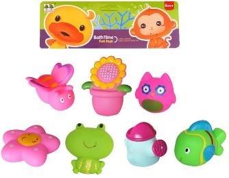 W ZESTAWIE: 7 GUMOWYCH ZABAWEK DO KĄPIELI, WYS. OK. 8 CM., WYM. OPK: 20 X 16 X 5 CM., 3+