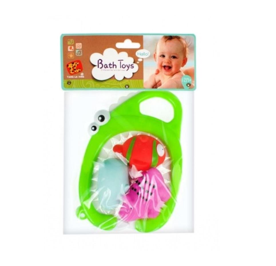 Zestaw zwierzątek do kąpieli zapakowany na blistrze.