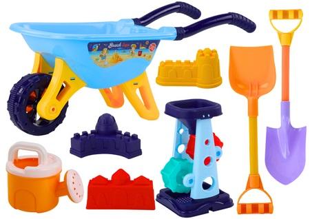Zestaw Zabawek Do Piasku Toczka Młynek Łopatki Konewka Niebieski Zestaw zabawek do piasku jest kompletnym wyposażeniem do tworzenia i eksploracji w piaskownicy lub na plaży. Centralnym elementem zestawu jest toczka, która ułatwia transportowanie piasku lub wody, dodając interaktywnego elementu do zabawy. Do zestawu dołączony jest również młynek, który umożliwia przesiewanie piasku lub tworzenie ciekawych efektów z wodą. Trzy foremki w kształcie zamków pozwalają na budowanie imponujących konstrukcji z piasku, rozwijając wyobraźnię i zdolności manualne dzieci. Zestaw zawiera także dwie różne łopatki: fioletową, która jest bardziej szpiczasta i idealna do precyzyjnego formowania detali oraz pomarańczową, która dzięki swojej szerokości doskonale sprawdza się przy przenoszeniu większych ilości piasku. Konewka natomiast jest przydatna do podlewania piaskowych zamków i innych konstrukcji lub do tworzenia interesujących efektów wodnych. Kolorowy design i bezpieczne materiały, z których wykonane są zabawki, zapewniają nie tylko długotrwałą zabawę, ale również pełne bezpieczeństwo podczas korzystania z zestawu. Dzięki takiemu wyposażeniu dzieci mogą rozwijać swoje umiejętności manualne, kreatywność oraz cieszyć się aktywnością na świeżym powietrzu. Wymiary toczki: 60cm x 25cm x 25cm Wymiary młynka: 19,5cm x 12cm x 11,5cm Wymiary fioletowej łopatki: 40cm x 9cm Wymiary pomarańczowej łopatki: 35cm x 9,5cm Wymiary opakowania: 60cm x 28cm x 25cm Posiada certyfikat CE, ponadto jest zgodny z normą EN71. Przeznaczony dla dzieci powyżej 3 roku życia.