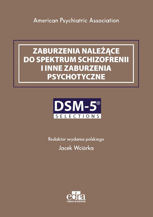 Zaburzenia należące do spektrum schizofrenii i inne zaburzenia psychotyczne jest jedną z pozycji serii „DSM-5 Selections”. Wspomniana seria to szereg publikacji książkowych, z których każda jest poświęcona któremuś z zaburzeń opisanych w DSM-5® Diagnostic and Statistical Manual of Mental Disorders. W niniejszej pozycji omówiono proces rozpoznawania zaburzeń należących do spektrum schizofrenii i innych zaburzeń psychotycznych. Książka jest bezcennym uzupełnieniem innych książek z serii „DSM-5 Selections”, a także stanowi istotny wkład w rozwój wiedzy z zakresu zdrowia psychicznego. Treść niniejszej publikacji opiera się na starannie wybranym materiale dotyczącym psychoz, który zaczerpnięto z: -podręcznika DSM-5® Diagnostic and Statistical Manual of Mental Disorders, wyd. V (DSM-5® Diagnostyka i Statystyka Zaburzeń Psychicznych) -DSM-5® Guidebook (Przewodnik po DSM-5®) -DSM-5® Clinical Cases (Przypadki kliniczne według DSM-5®) -DSM-5® Self-Exam Questions (Pytania do samodzielnego sprawdzania wiadomości według DSM-5® ? przewodnik z pytaniami i odpowiedziami)