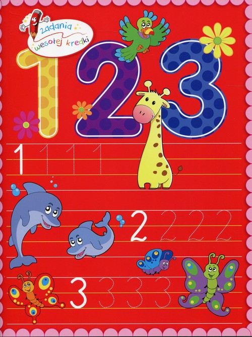 Wesoła Kredka i zwierzęta zapraszają do nauki liczenia i pisania.