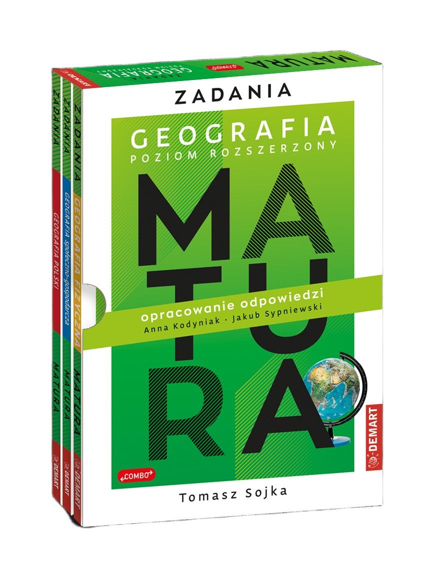 Zadania z geografii w etui to wygodna dla ucznia forma wydanych w jednym tomie Zadań z geografii. Gruba książka podzielona na trzy, pozwala na łatwiejsze korzystanie z nich w toku całego nauczania w szkole ponadpodstawowej.