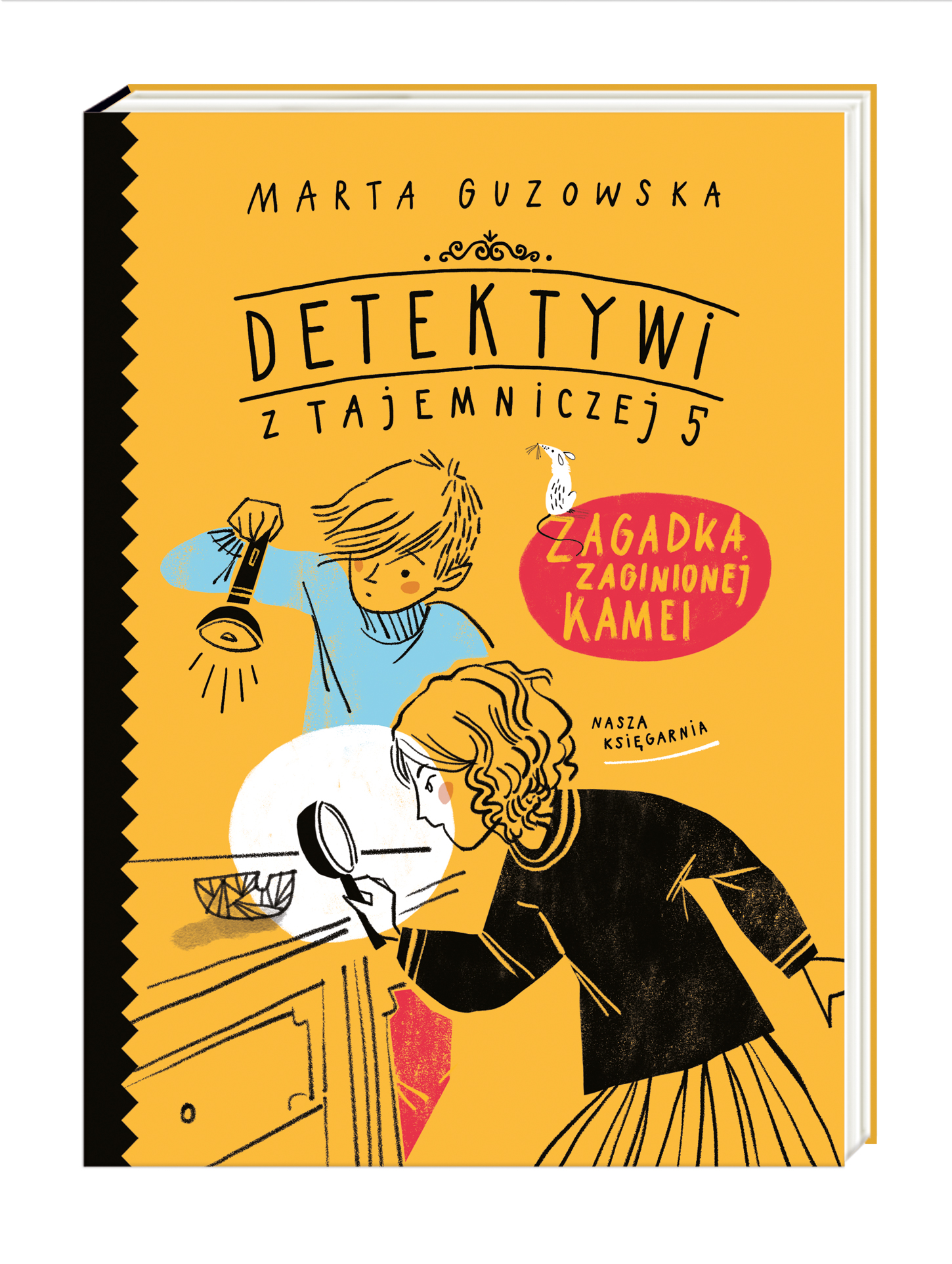 Pierwszy tom serii detektywistycznej o młodych śledczych z Tajemniczej 5! Kiedy Anka spotyka w windzie Piotrka, jego małą siostrzyczkę Jagę i oswojonego szczura Sherlocka, nic nie zapowiada popołudnia pełnego wrażeń. Gdy jednak cała czwórka odwiedza babcię Piotrka i Jagi, okazuje się, że potrzebny będzie detektyw, bo zaginęła kamea – pamiątka rodzinna, a zarazem kopia bezcennej ozdoby księżny Izabeli Czartoryskiej. Tego dnia do mieszkania babci wchodzili tylko: sąsiadka, listonosz i pan, który miał naprawić dekoder. Kto z nich zabrał kameę? „Detektywi z Tajemniczej 5” zostali wymyśleni na wyraźne życzenie dzieci Marty Guzowskiej – dotąd autorki powieści kryminalnych dla dorosłych. Seria książek o śledztwach Anki i Piotrka łączy przygodową fabułę, elementy wiedzy o historii sztuki oraz interaktywną formę, gdyż każdy tom wymaga od czytelnika logicznego myślenia i rozwiązywania zagadek. O autorce: Marta Guzowska planuje przeżyć dziewięć żyć – jak kot. Na razie ma na koncie trzy: jest archeolożką, pisarką i mamą. Za swoje powieści kryminalne i sensacyjne dla dorosłych otrzymała dwie nominacje do Nagrody Wielkiego Kalibru oraz nagrodę główną. „Detektywi z Tajemniczej 5” to jej pierwsza seria książek dla najmłodszych. Według samej autorki „dla dzieci pisze się o wiele trudniej, bo mają detektor ściemy”.